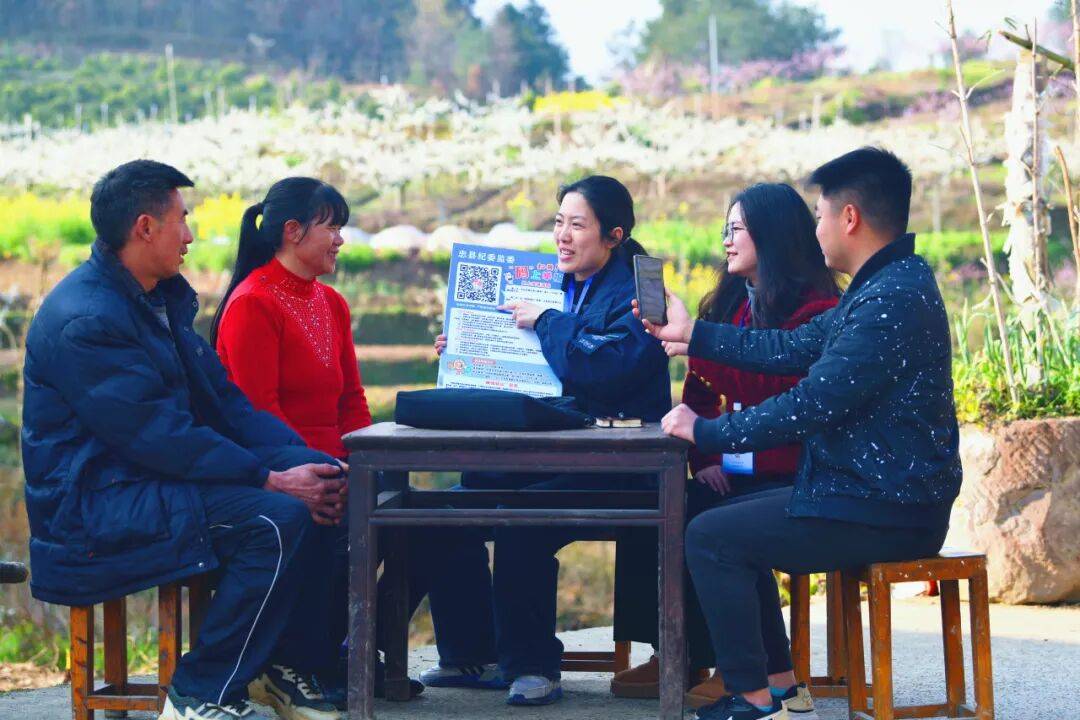 忠县纪委监委畅通多元信访举报渠道,深化“码上举报”推广运用,推动一线接访与线上举报深度融合,全方位、多维度收集问题线索,持续整治群众身边不正之风和腐败问题。图为该县纪检监察干部在石宝镇云山村开展信访举报宣传,收集问题线索。
